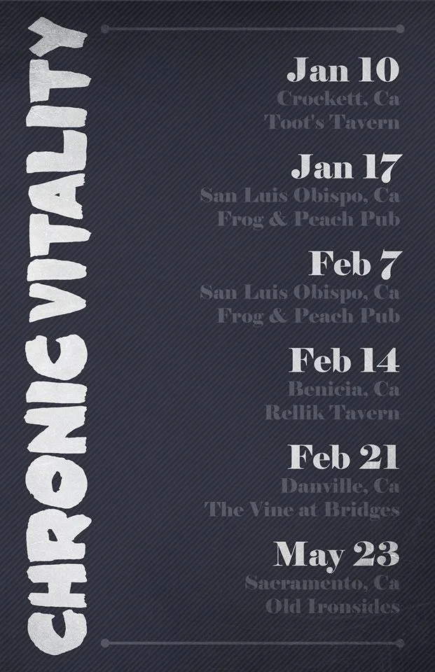 Check Chronic Vitality's past weekend! On Friday, December 5th, they rocked Old Ironsides in downtown Sacramento. Then on Saturday, they spent the day recording new material at Ex'pression College in Emeryville. Click on the image below to see pictures from this awesome weekend!